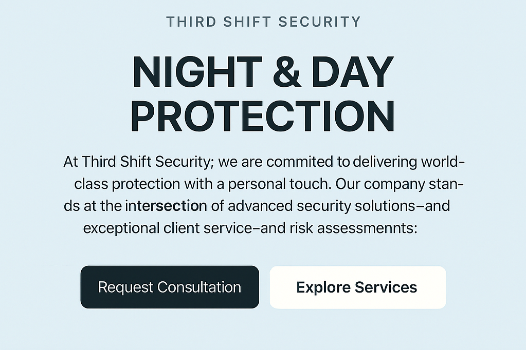Whether protecting commercial properties, residential communities, or special events, Third Shift Security delivers peace of mind with integrity, excellence, and care.